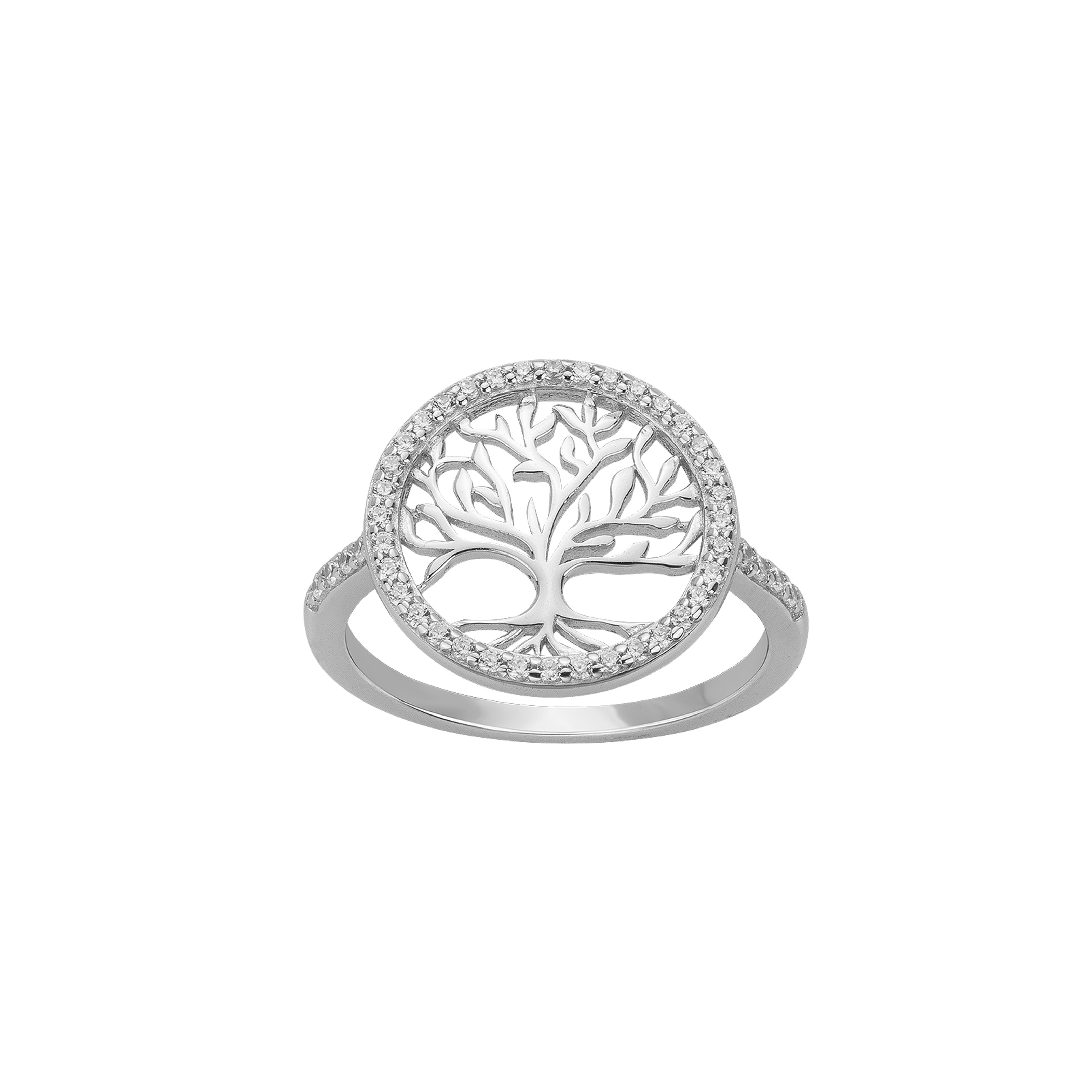 Bague en argent et oxydes de zirconium, arbre de vie