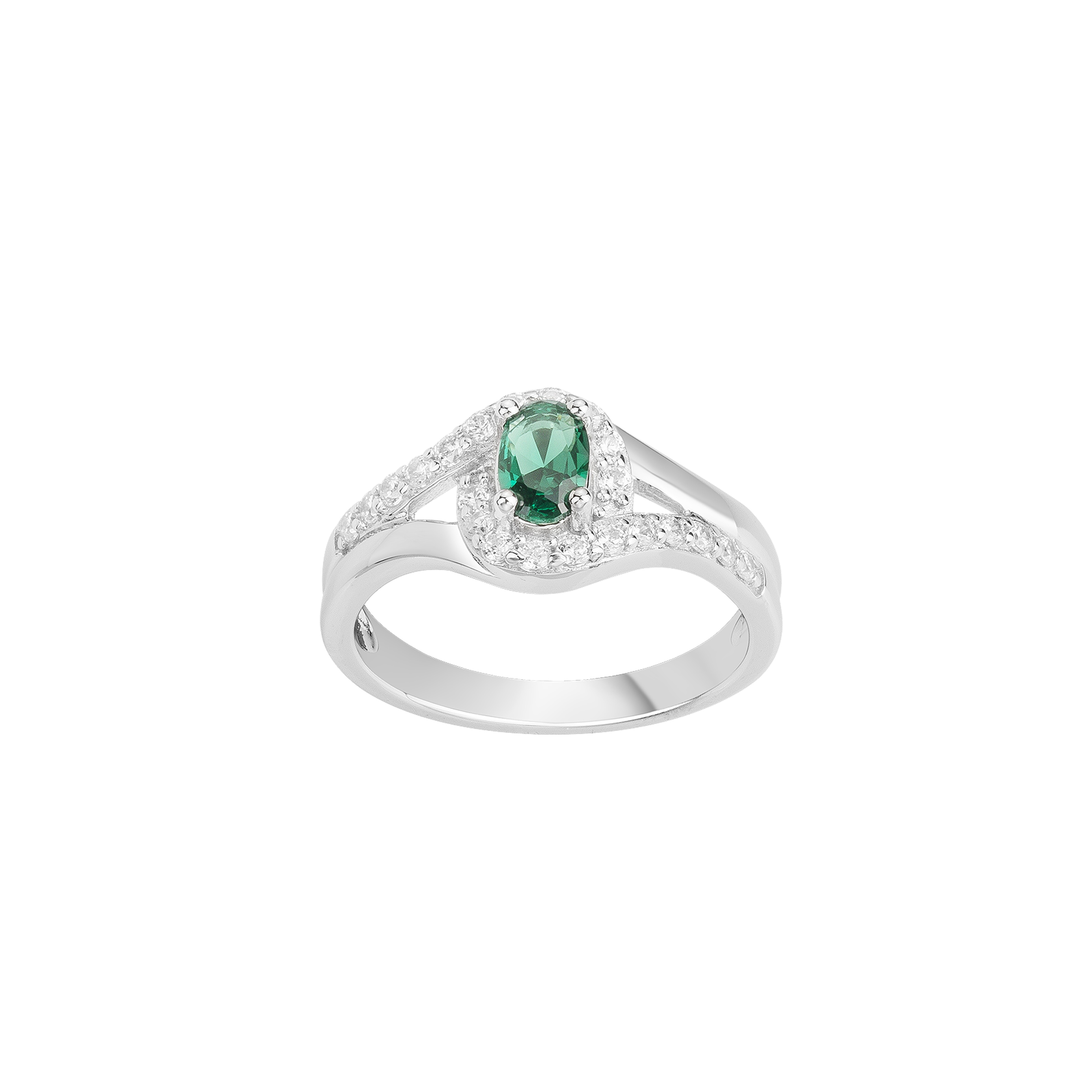 Bague en argent, oxyde coloré vert et oxyde de zirconium