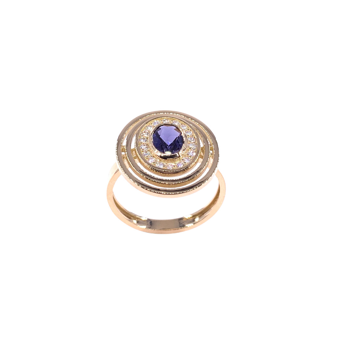 Bague en or jaune, iolite et diamants
