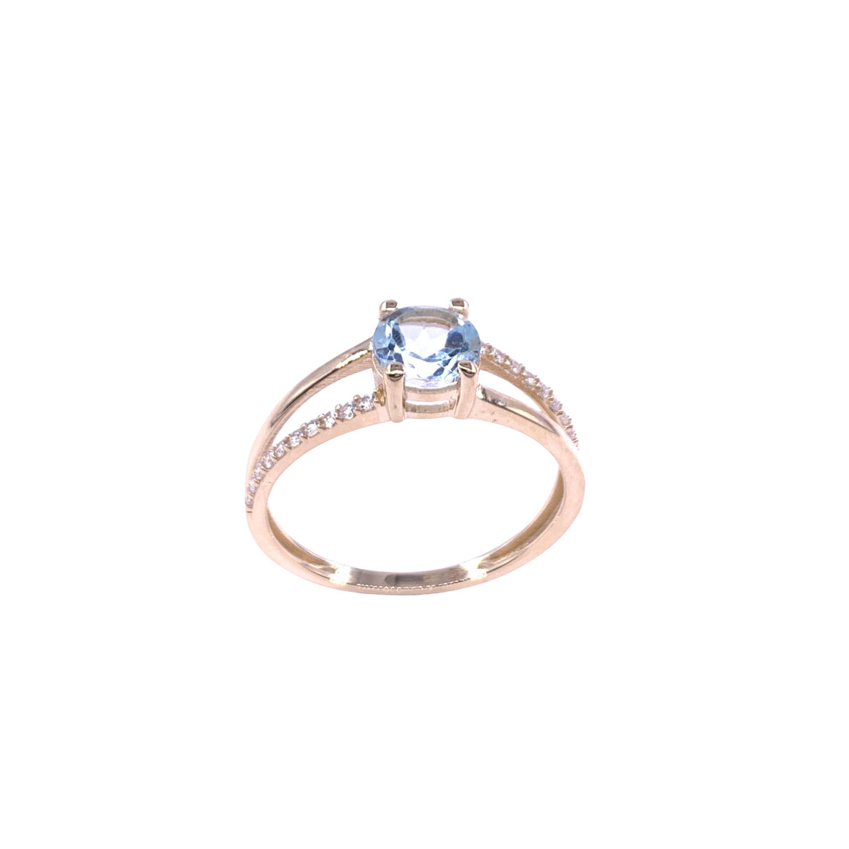 Bague en or jaune, topaze bleue traitée et oxydes de zirconium