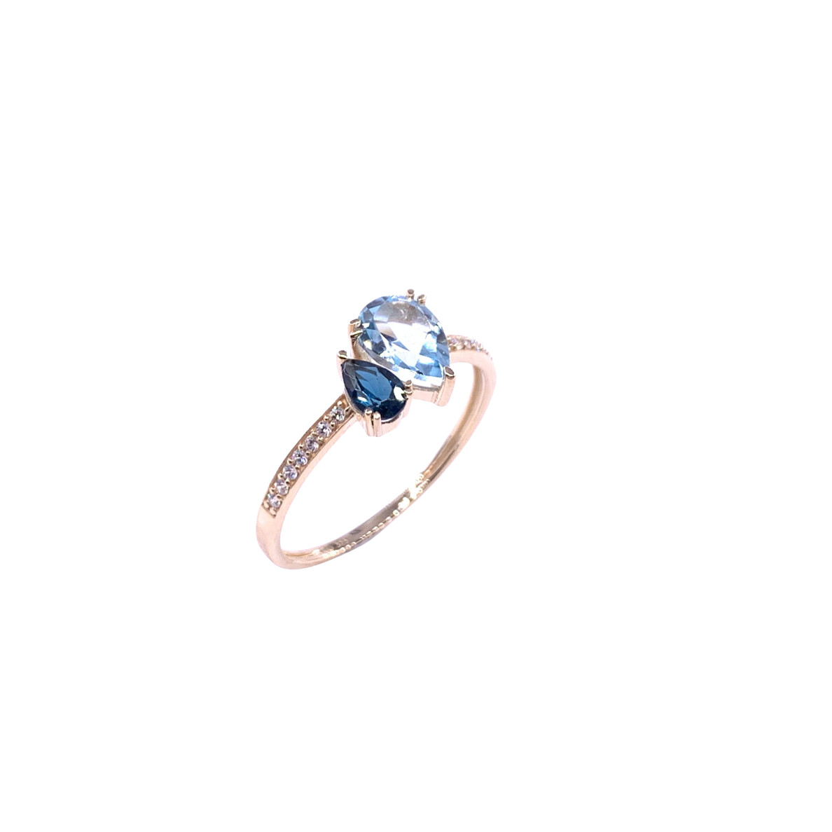 Bague en or jaune, topaze bleue traitée et oxydes de zirconium