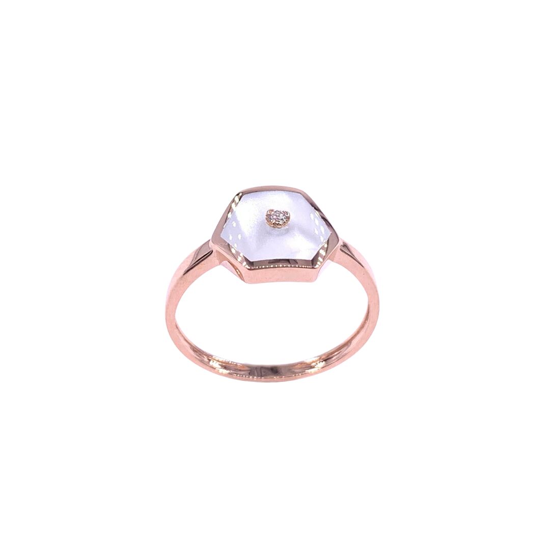 Bague en or rose, diamants et résine nacrée blanche