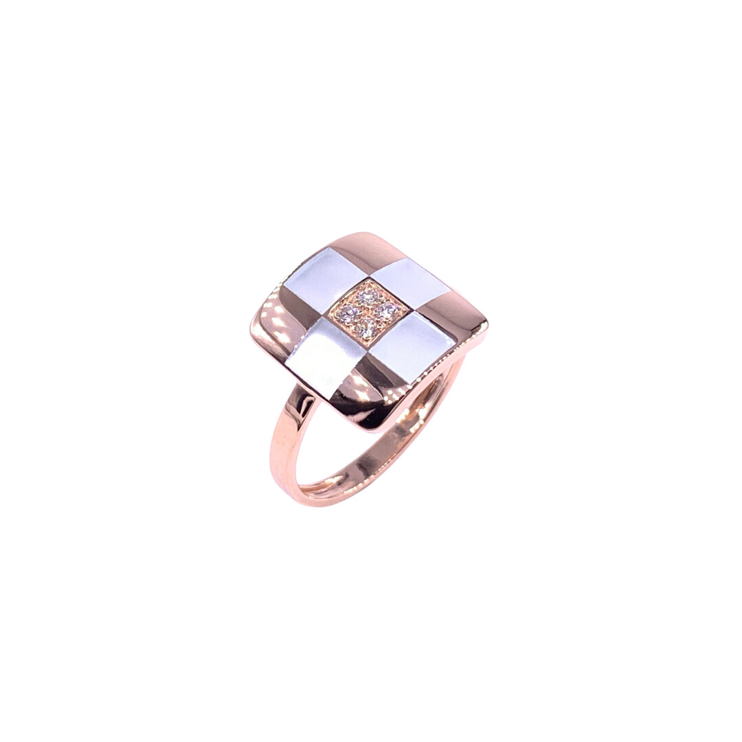 Bague en or rose, diamants et résine nacrée blanche