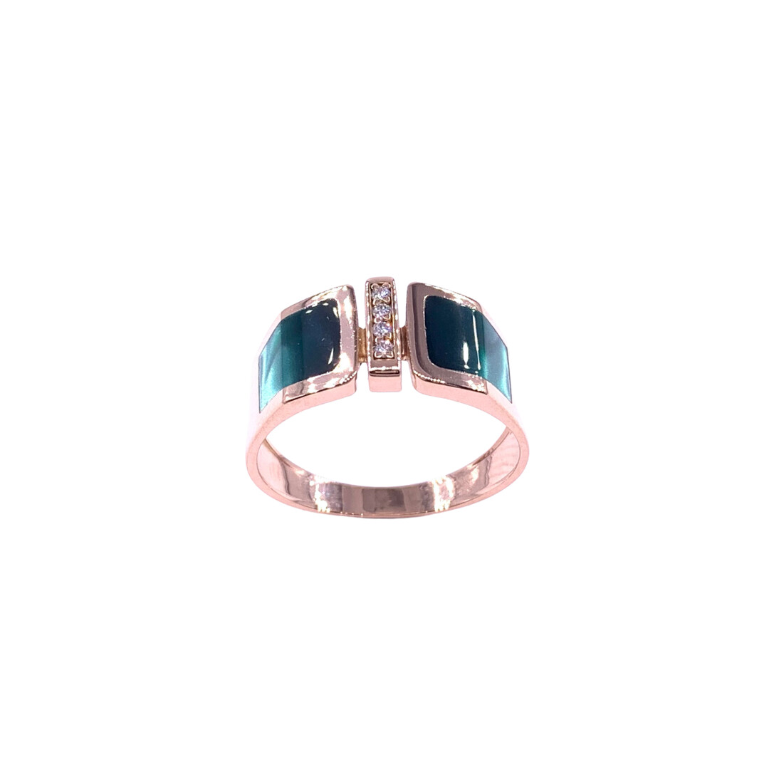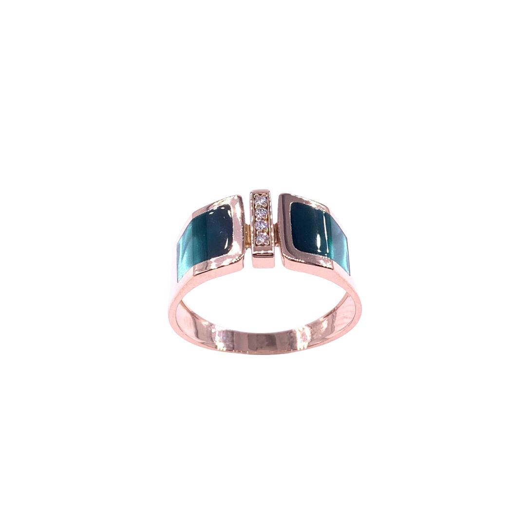 Bague en or rose, diamants et résine nacrée vert bronze