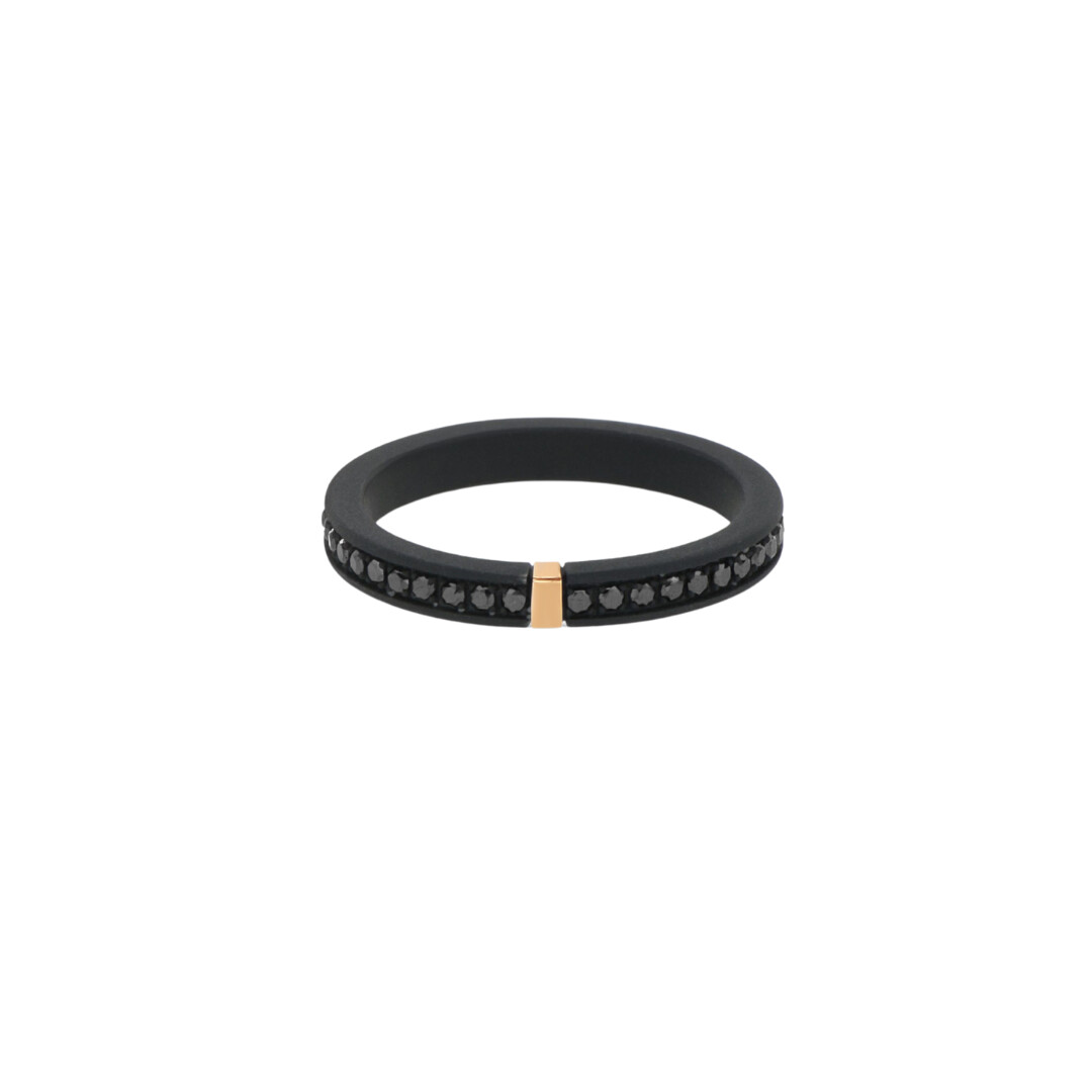 Bague en titane finition noire, or rose 750 ‰ et diamants noirs traités