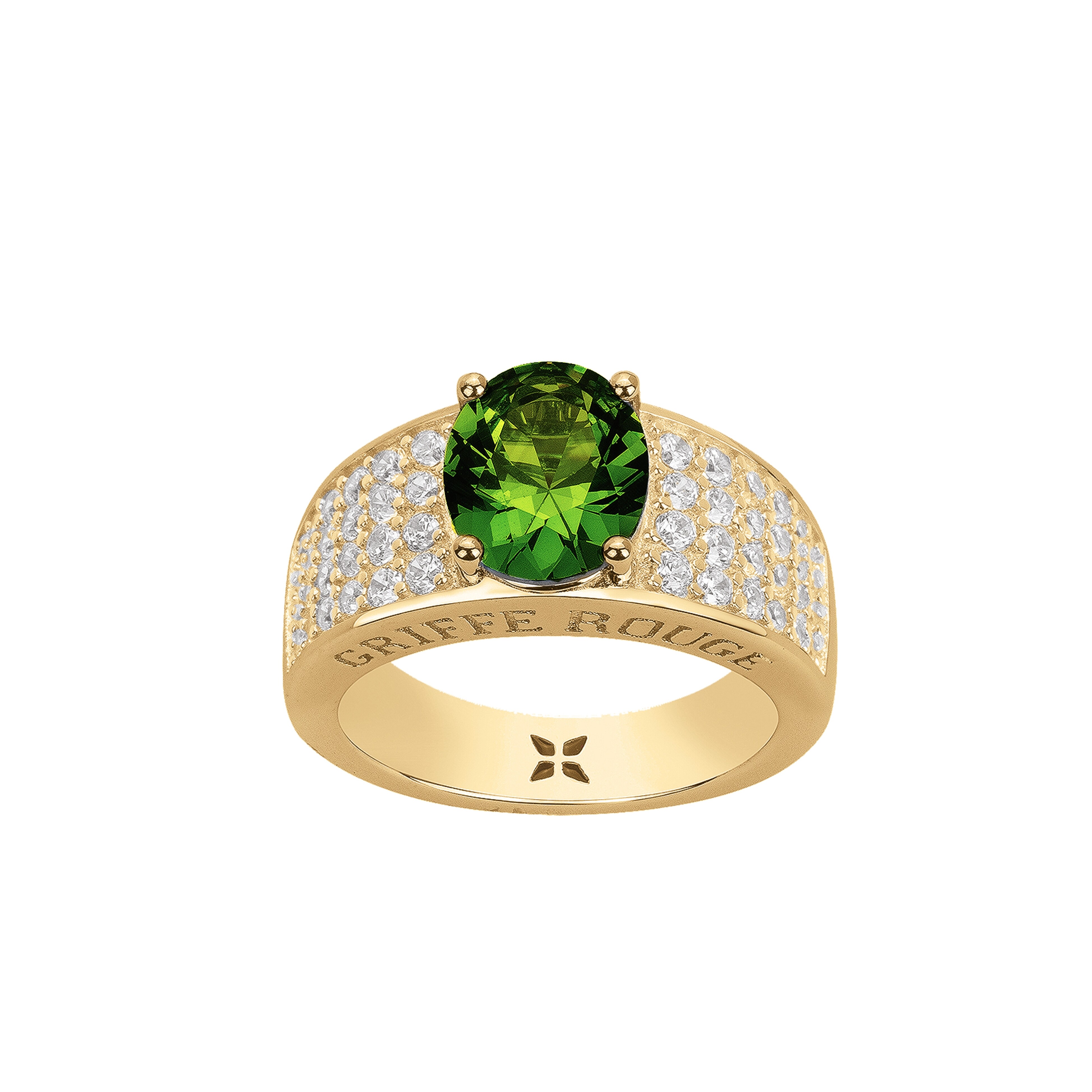 Bague Griffe Rouge en plaqué or, oxydes de couleur vert et oxyde de zirconium