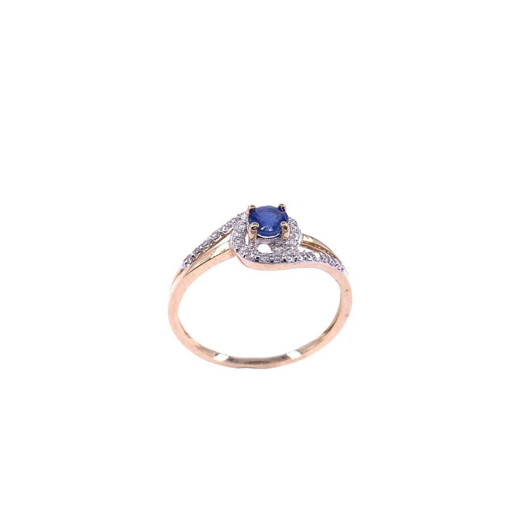Bague en or jaune, bicolore, saphir et oxydes de zirconium