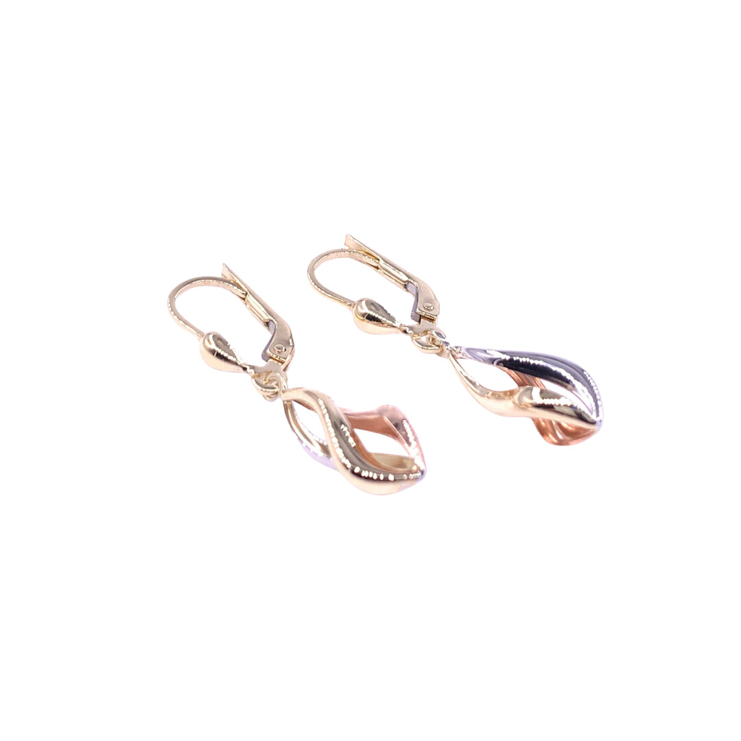Boucles d'oreilles dormeuse en or jaune, tricolore