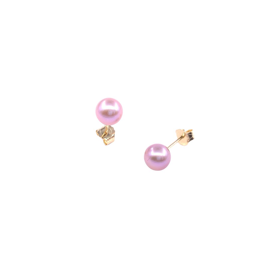 Boucles d'oreilles en or jaune et perles de culture pink (diamètre : 6/6.5mm)