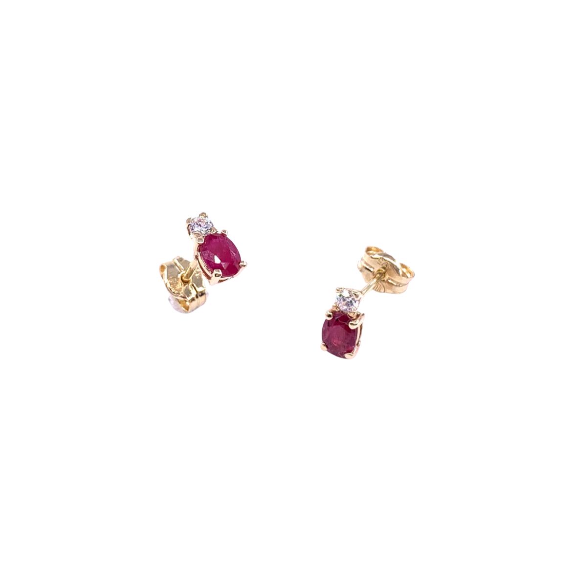Boucles d'oreilles en or jaune, rubis et oxydes de zirconium