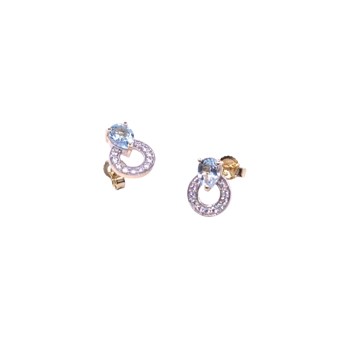 Boucles d'oreilles en or jaune, topaze bleue traitée et oxydes de zirconium