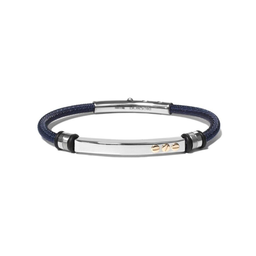 Bracelet en acier câble bleu jeans et insert vis or rose