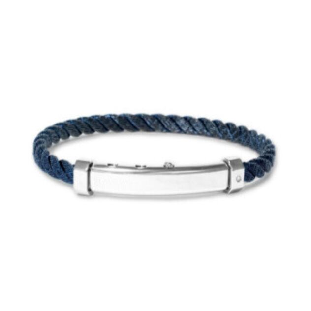 Bracelet en acier, corde bleue jeans en acier et insert diamant