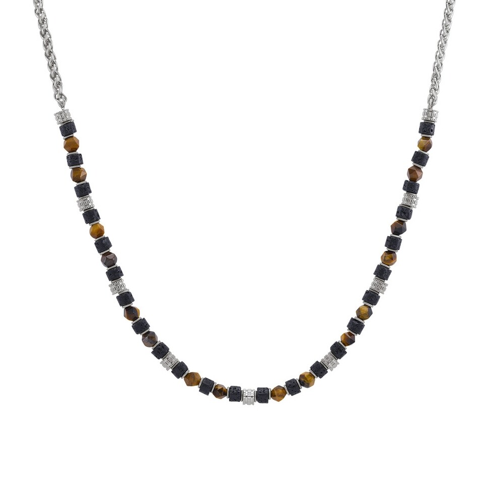 Bracelet en acier, œil de tigre et pierre de lave