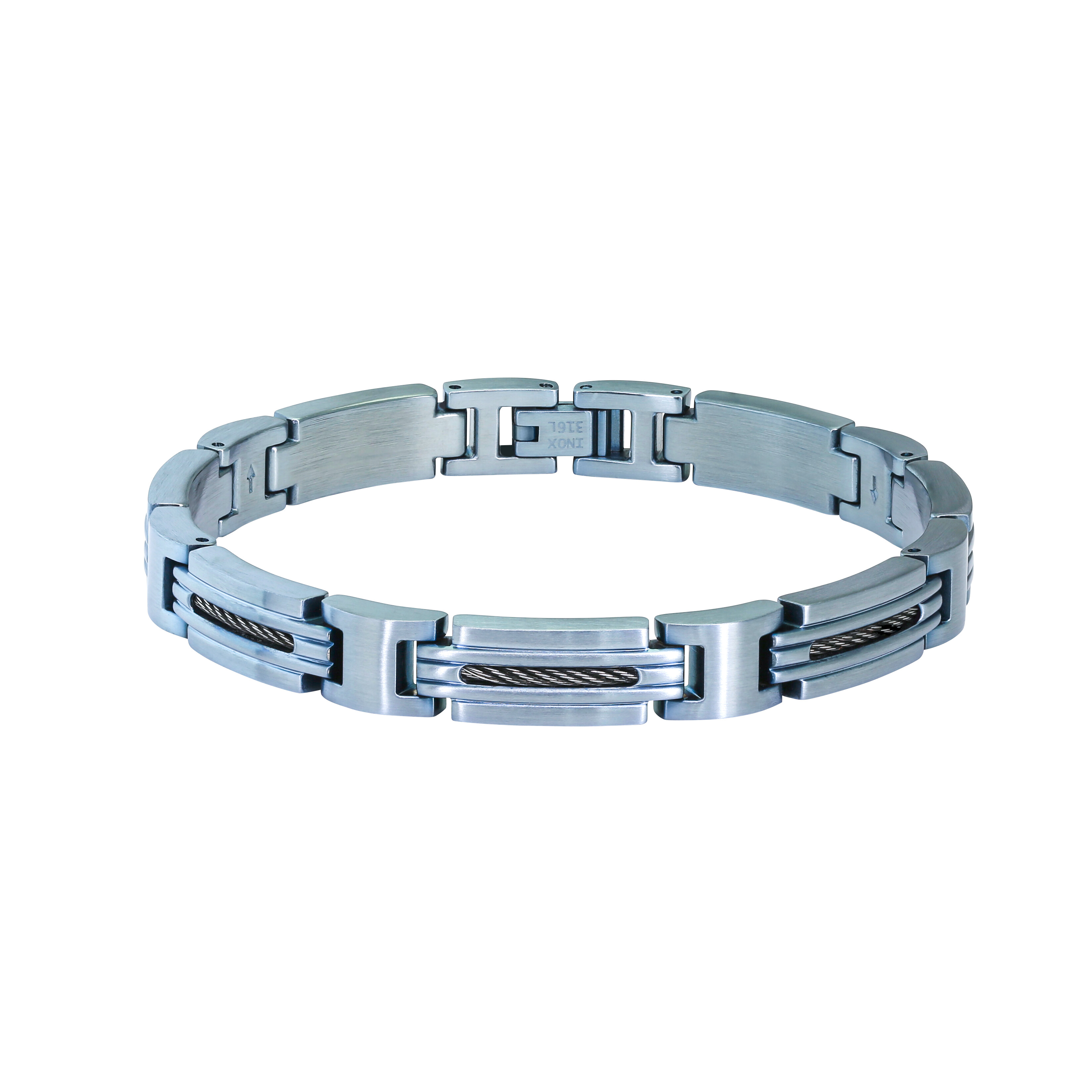 Bracelet en acier PVD bleu et câble