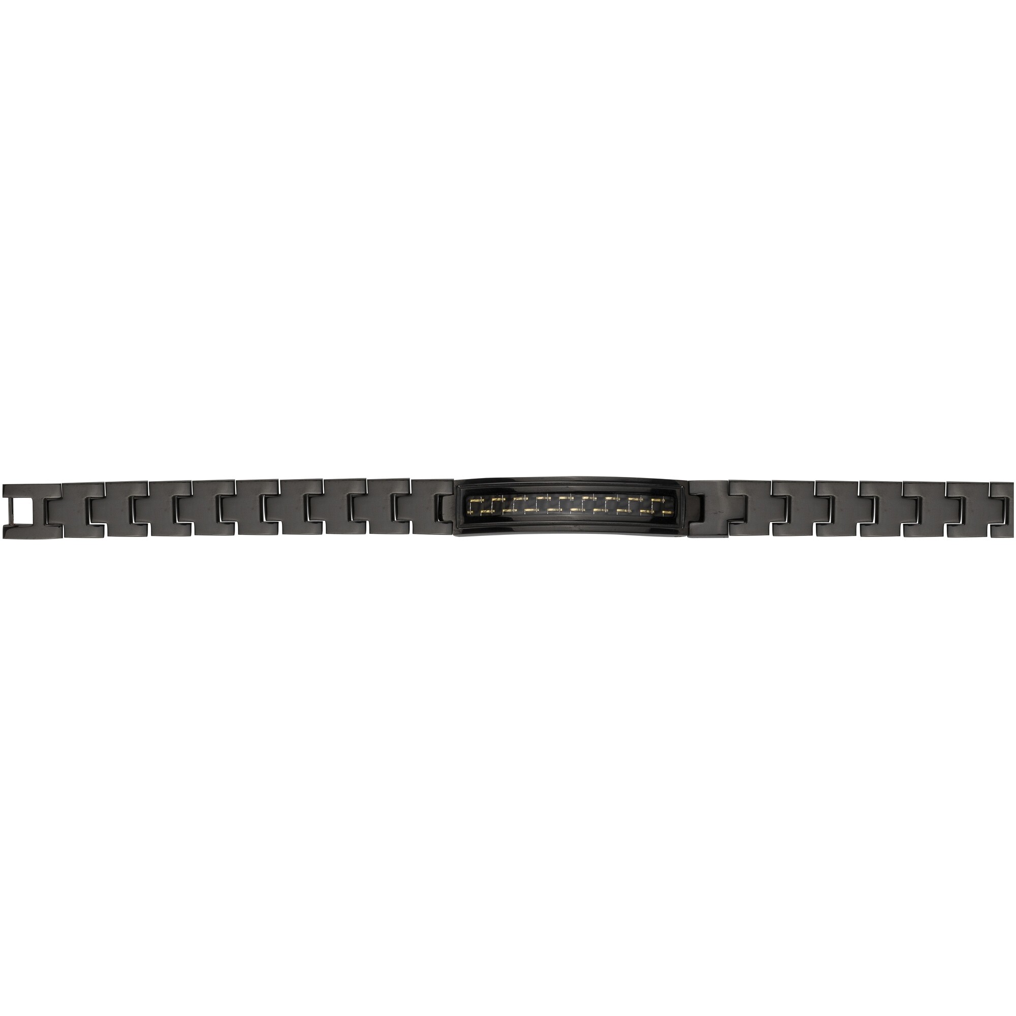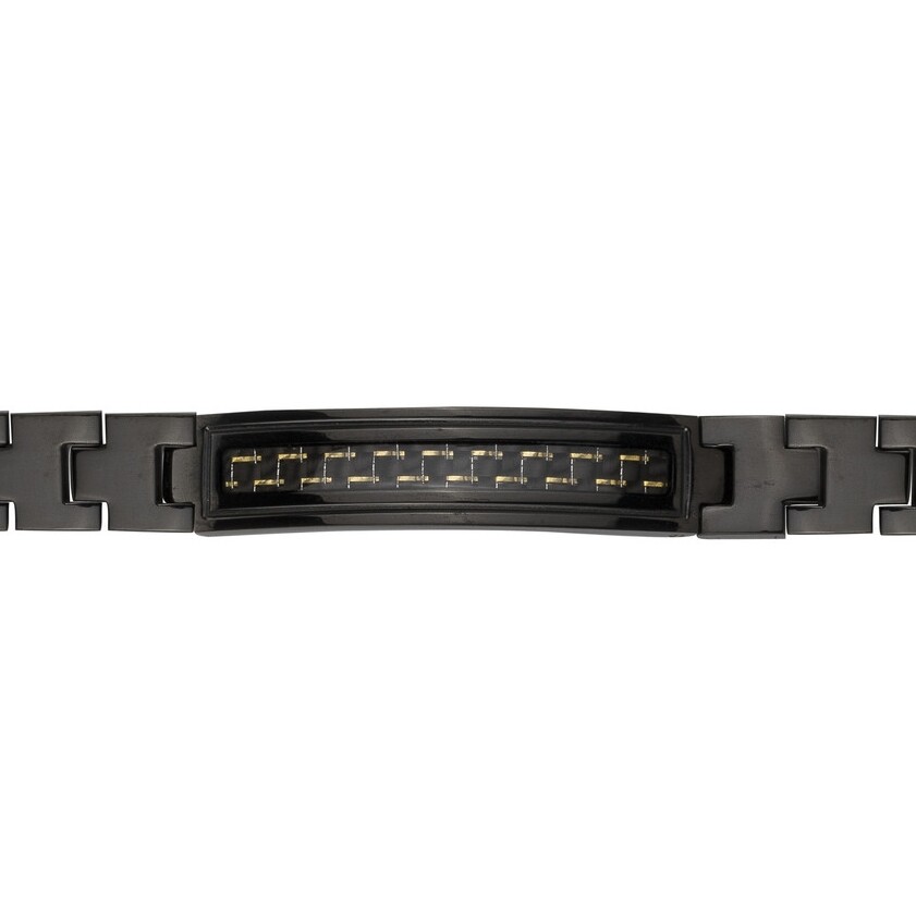 Bracelet en acier pvd noir et insert carbone fil jaune