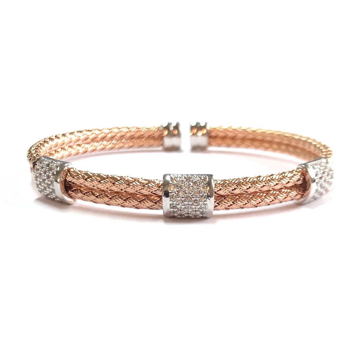 Bracelet en argent, argent plaqué or rose et oxydes de zirconium