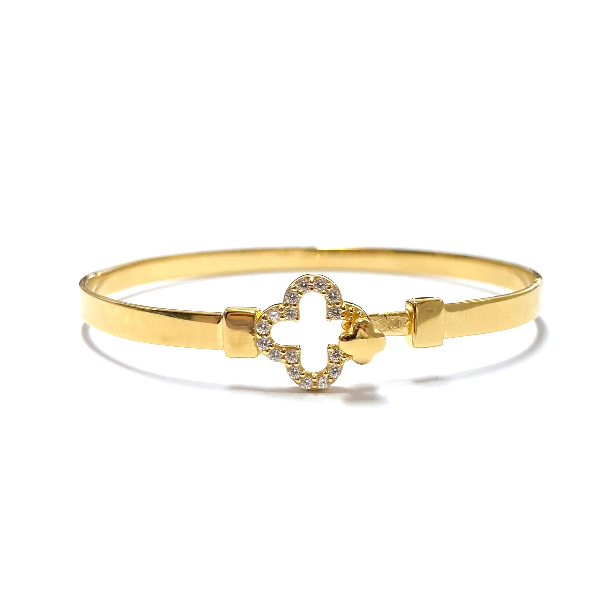 Bracelet en argent plaqué or jaune et oxydes de zirconium, motif trèfle
