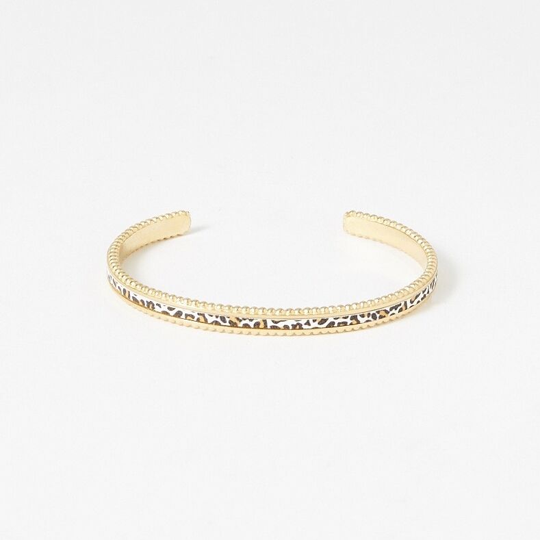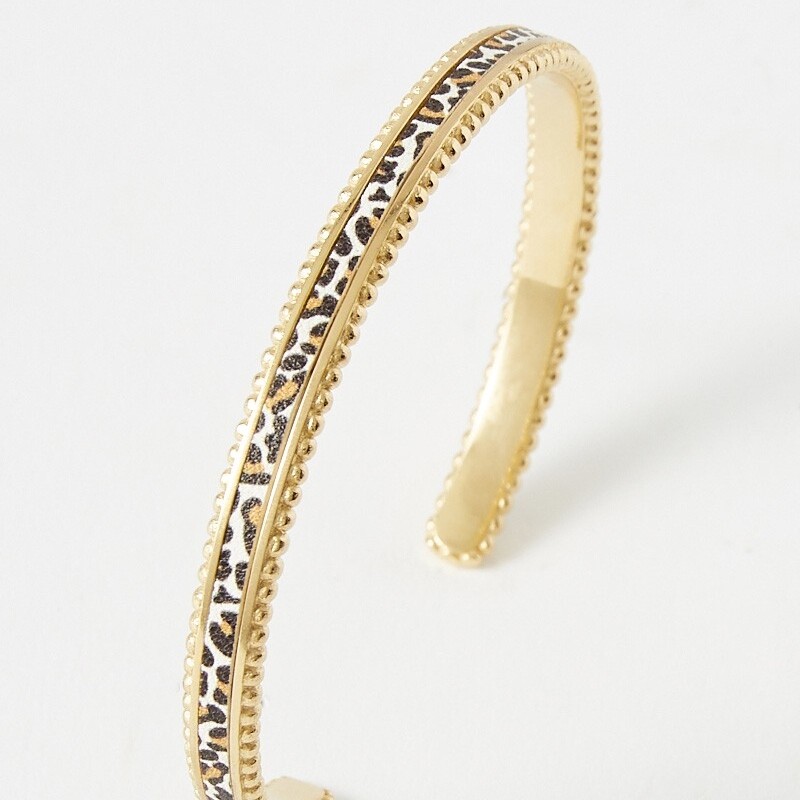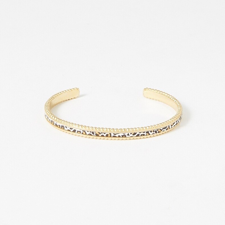 Bracelet rigide Flowersforzoé en cuir et métal doré