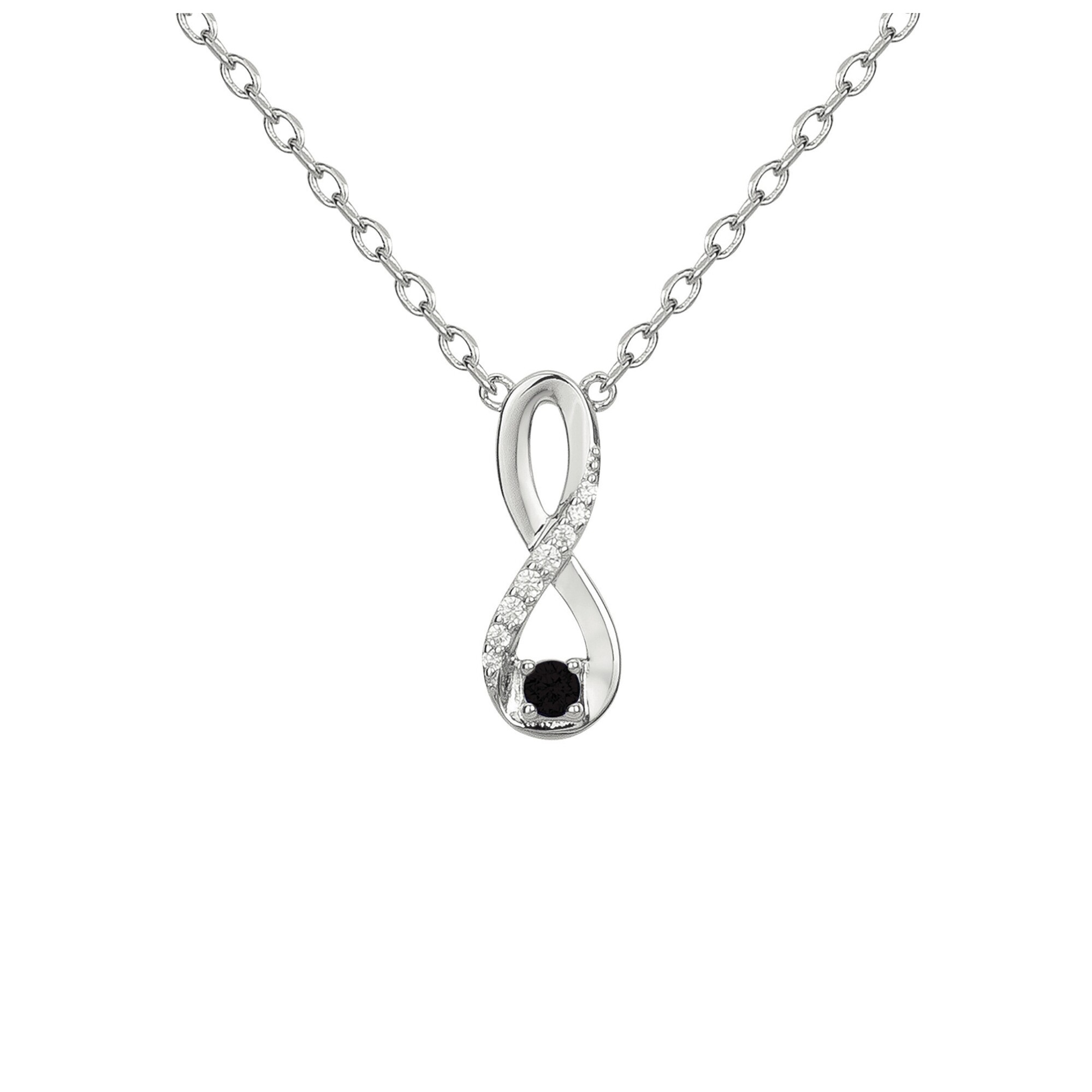 Collier en argent, oxyde de zirconium noir et oxyde de zirconium, motif infini