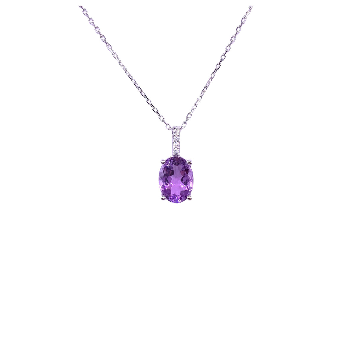 Collier en or blanc, améthyste, et oxyde de zirconium