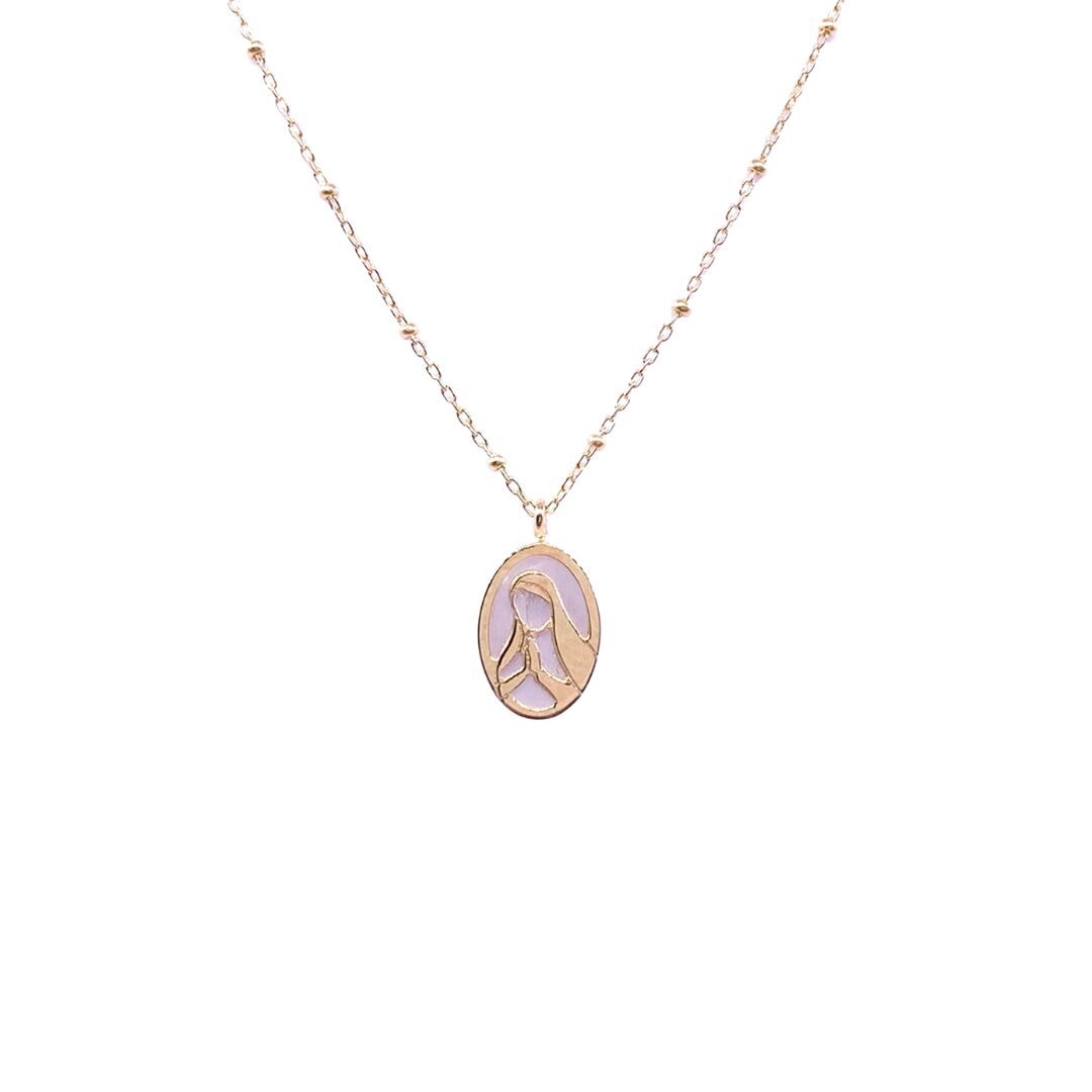 Collier en or jaune et nacre motif vierge