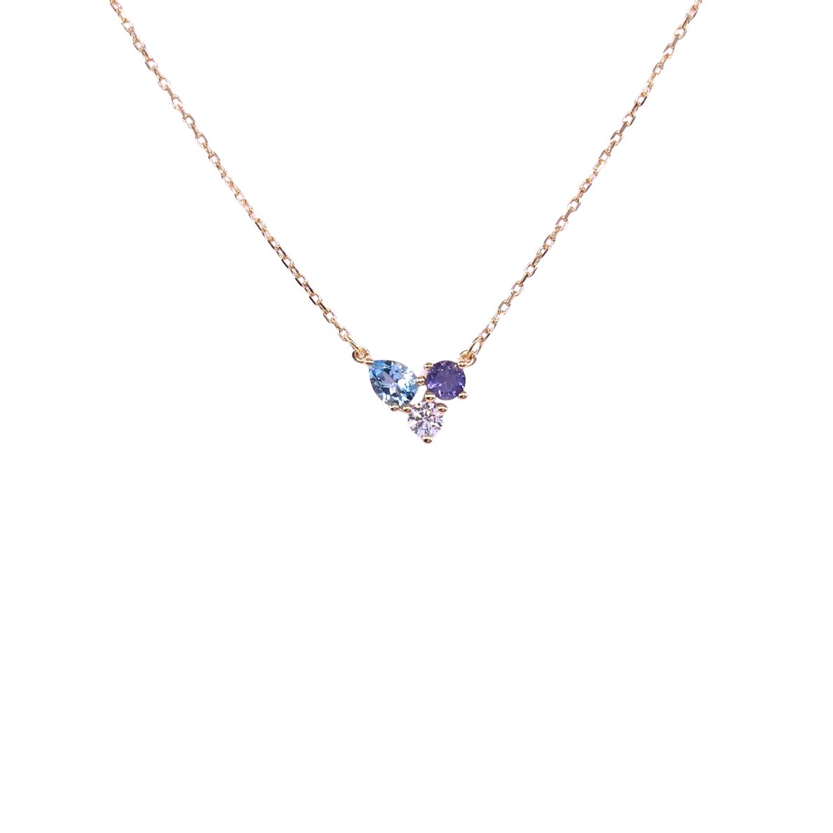 Collier en or jaune, iolite, tanzanite et oxyde de zirconium