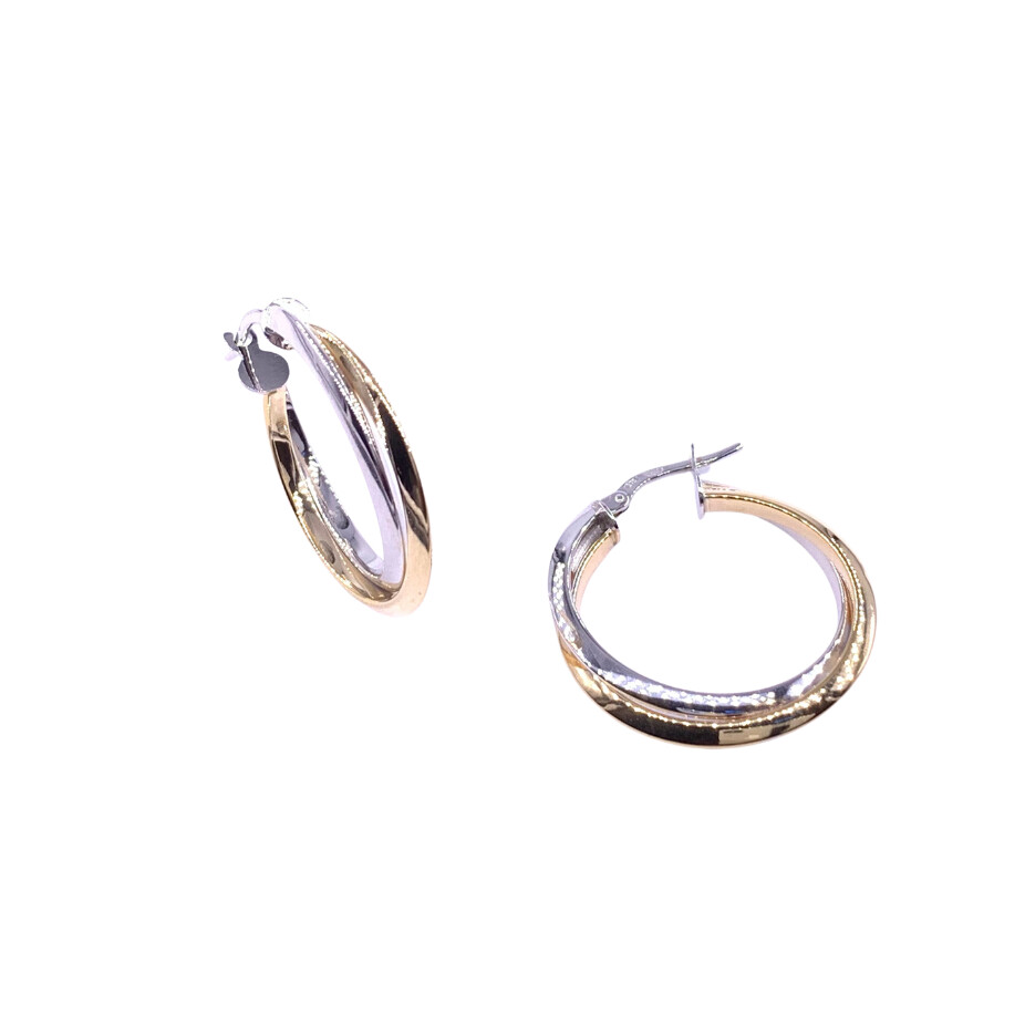 Créoles en or jaune et or blanc, diamètre extérieure 23mm